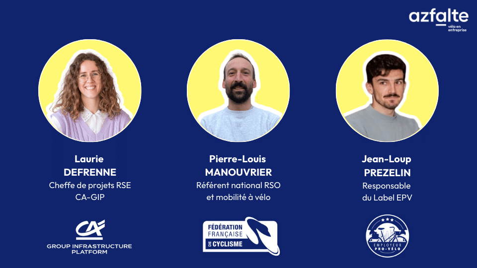 Durant ce webinaire d’une heure, vous découvrirez comment CA-GIP a obtenu le niveau OR du Label Employeur Pro-vélo, et comment obtenir votre label, avec le soutien de la Fédération Française de Cyclisme et d’Azfalte.